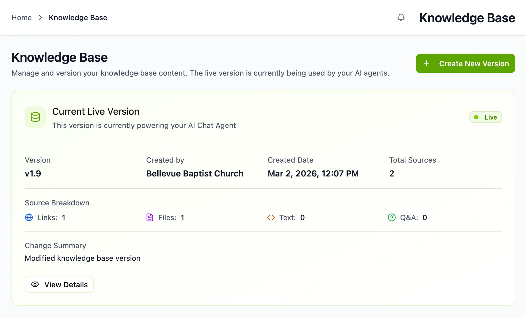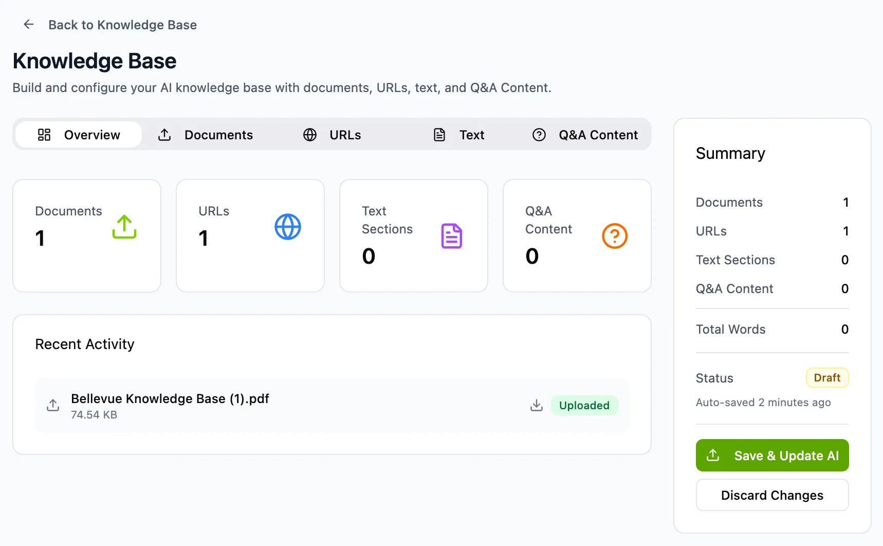 Real-Time Sync: If you want to introduce any changes, hit "Edit" near the existing knowledge base and after adding the info click “Save & Update AI”, both your Chat and Voice agents will be updated.