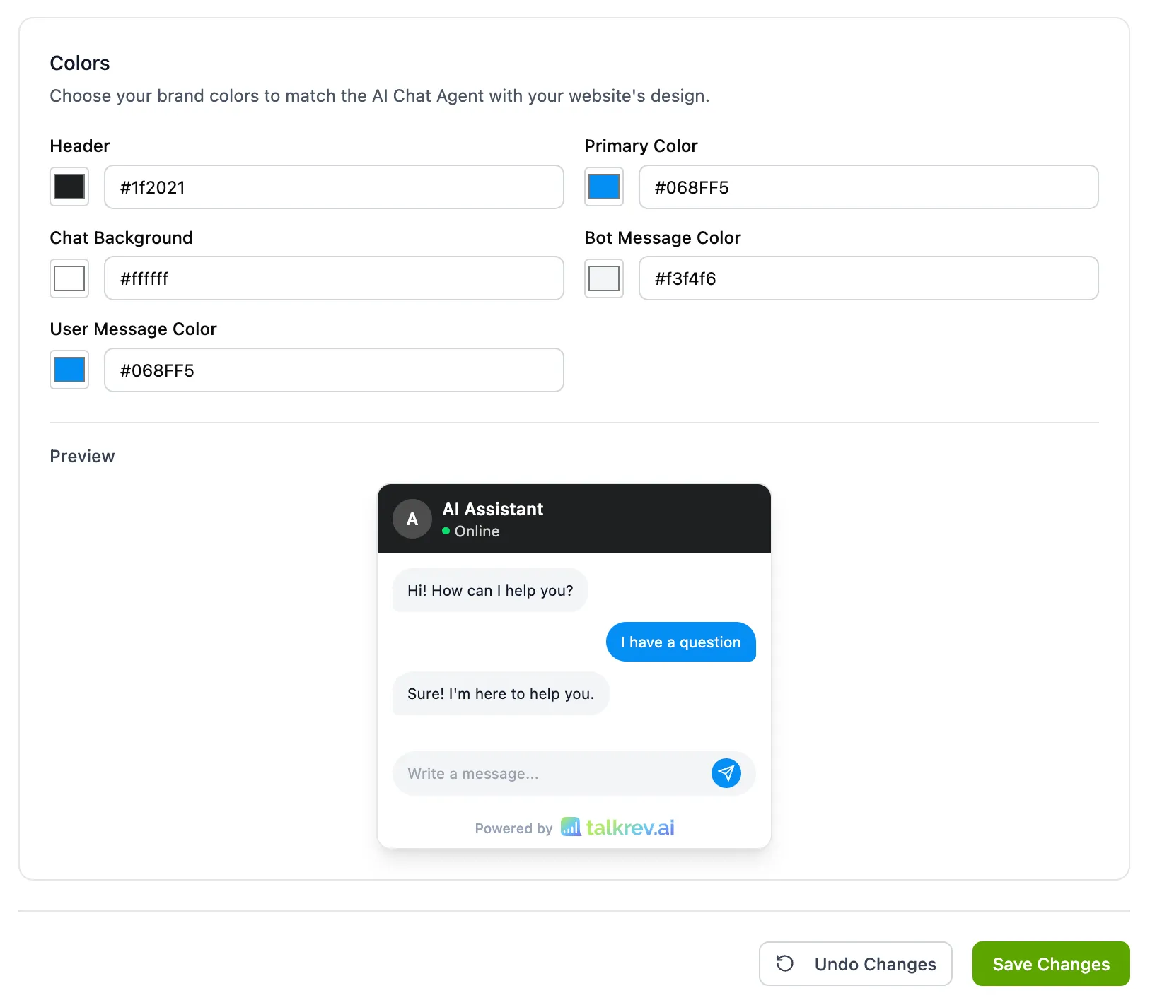Brand the Experience: Match the widget colors to your site and upload a custom avatar.