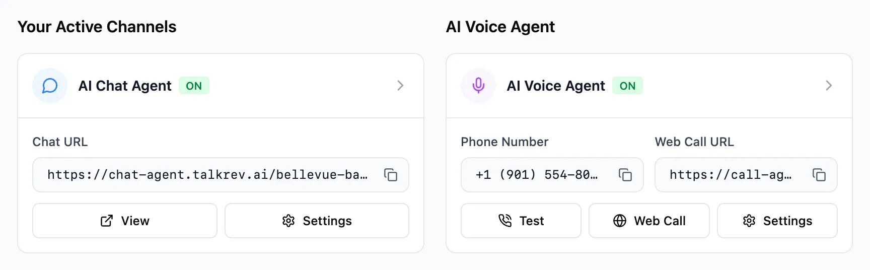 For Voice: Route your business calls to your TalkRev Agent or use it as an after-hours receptionist.